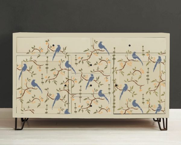 Chinoiserie Birds Annie Sloan Stencil furniture Old Ochre and Graphite 2500 600x480 1 - Marianthi Karta