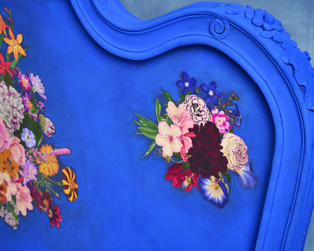 Η Floribunda είναι το πιο πολύχρωμο χαρτί Decoupage (της Annie Sloan και του Royal Horticultural Society). Αυτά τα πληθωρικά, χαρούμενα, επιδεικτικά άνθη έχουν δημιουργηθεί με τη δημιουργία κολάζ από το έργο πολλών ζωγράφων, ιδίως τις εικονογραφήσεις της Caroline Maria Applebee (γεννημένη στο Λονδίνο το 1799) και του Graham Stuart Thomas (1909 – 2003). Η Annie μετέφερε διάφορα στελέχη για να δημιουργήσει αυτό το ευχάριστο μπουκέτο, το οποίο ανθίζει με φόντο το Napoleonic Blue (διατίθεται και ως Chalk Paint® και ως Annie Sloan Wall Paint).