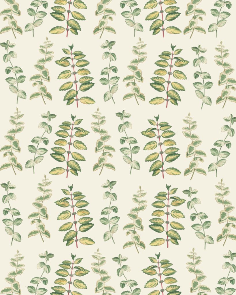 Το Mint είναι ένα εκλεπτυσμένο και χαριτωμένο βοτανικό φλοράλ χαρτί από την Annie Sloan και το Royal Horticultural Society (RHS). Αυτές οι κομψές ακουαρέλες μέντας είναι του Pierre François Ledoulx, ζωγράφου λουλουδιών και εντόμων από τις Βρυξέλλες. Αυτά τα φαινομενικά αδιάφορα φύλλα  θα φαίνονται υπέροχα ως μέρος ενός χώρου κουζίνας ή κήπου. Είναι τυπωμένα σε μη βαμμένο λεπτό χαρτί, σχεδιασμένο να εναρμονίζεται με χρώμα κιμωλίας  Old White στο φόντο (το Old White διατίθεται και ως Chalk Paint® και ως Annie Sloan Wall Paint).
