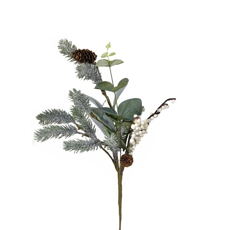 Χριστουγεννιάτικο Κλαδί Με Φύλλα Ευκάλυπτου, Έλατου Και Λευκά Berries Y45 | ZAROS