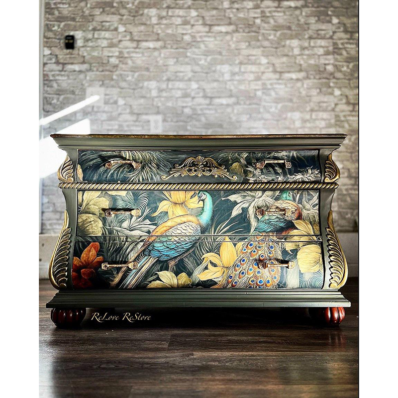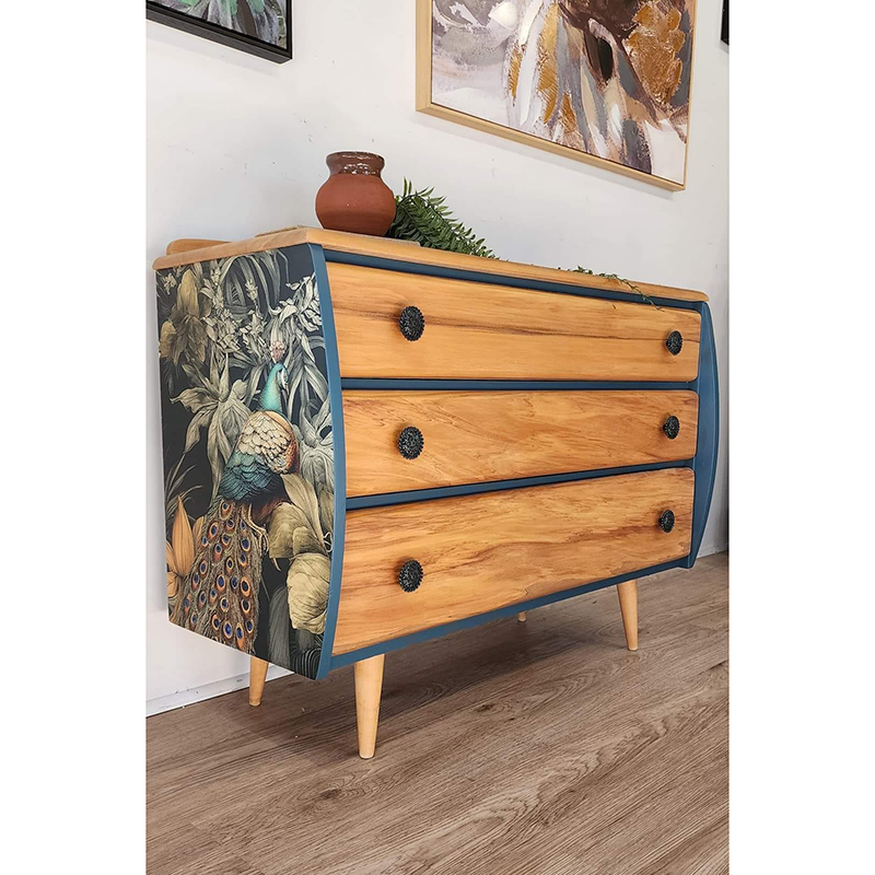 Το ιδανικό μέγεθος χαρτιού και εκτύπωση έχουν φροντιστεί επιμελώς από τη Michelle, ιδιοκτήτρια της MINT, και είναι το αποκορύφωμα χρόνων δουλειάς με χαρτιά decoupage και μεταμορφώσεων επίπλων με σκοπό την μοναδικότητα, το στυλ και την καλλιτεχνική αρτιότητα.