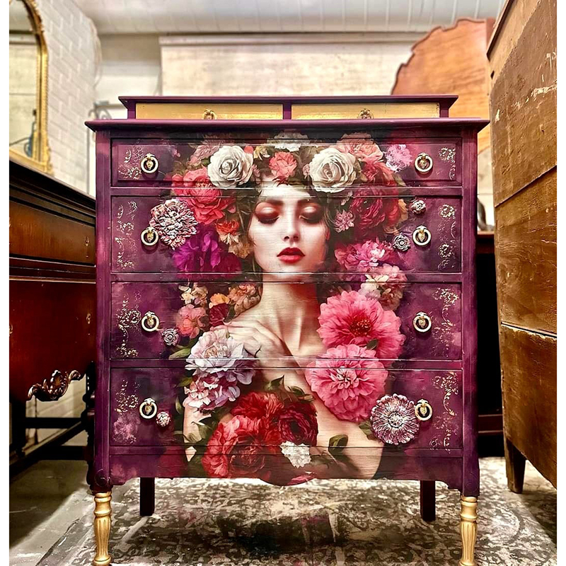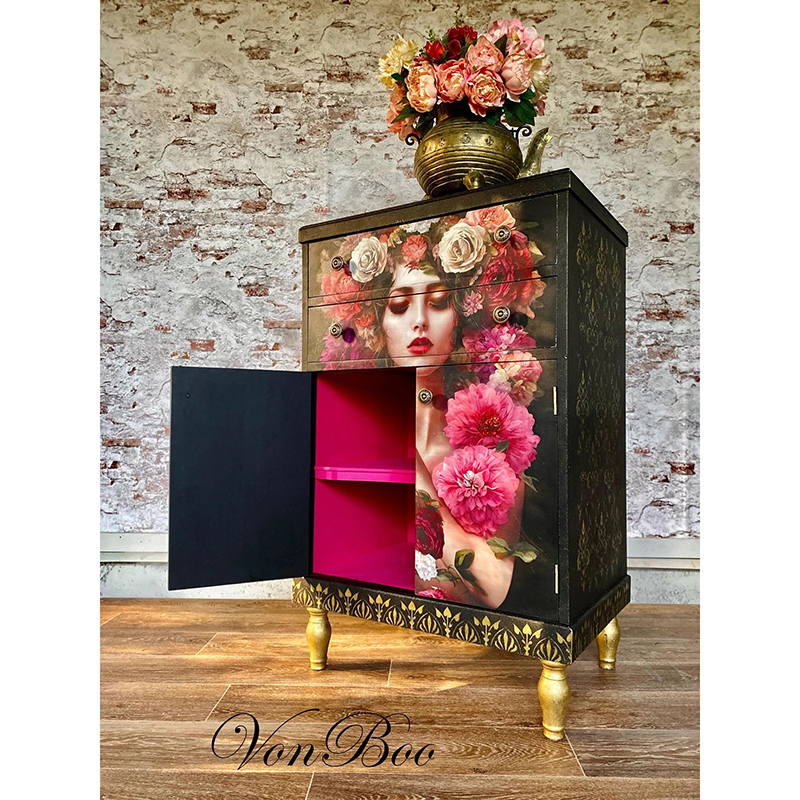 Το ιδανικό μέγεθος χαρτιού και εκτύπωση έχουν φροντιστεί επιμελώς από τη Michelle, ιδιοκτήτρια της MINT, και είναι το αποκορύφωμα χρόνων δουλειάς με χαρτιά decoupage και μεταμορφώσεων επίπλων με σκοπό την μοναδικότητα, το στυλ και την καλλιτεχνική αρτιότητα.