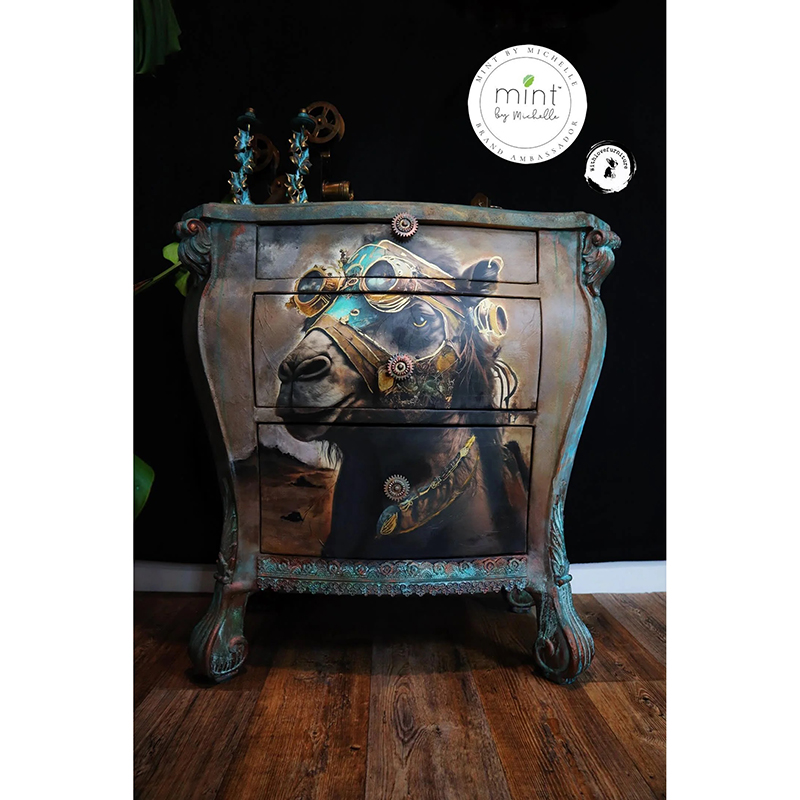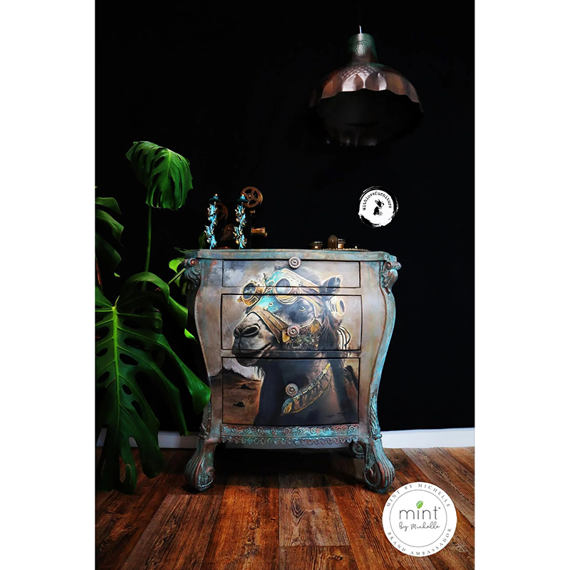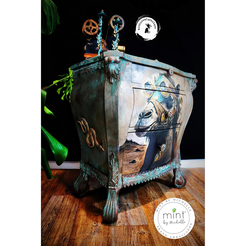 Το ιδανικό μέγεθος χαρτιού και εκτύπωση έχουν φροντιστεί επιμελώς από τη Michelle, ιδιοκτήτρια της MINT, και είναι το αποκορύφωμα χρόνων δουλειάς με χαρτιά decoupage και μεταμορφώσεων επίπλων με σκοπό την μοναδικότητα, το στυλ και την καλλιτεχνική αρτιότητα.