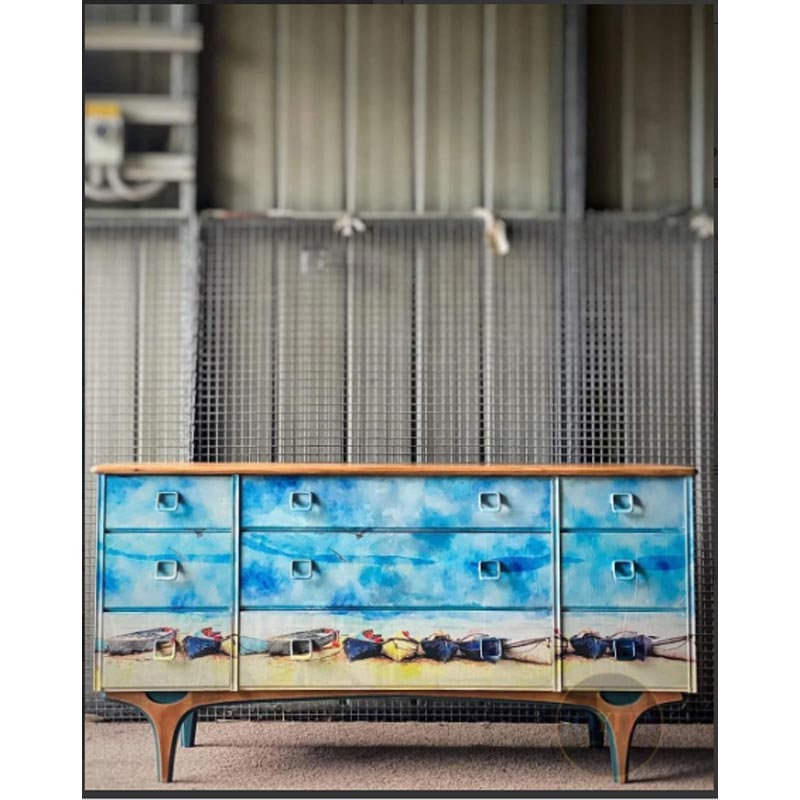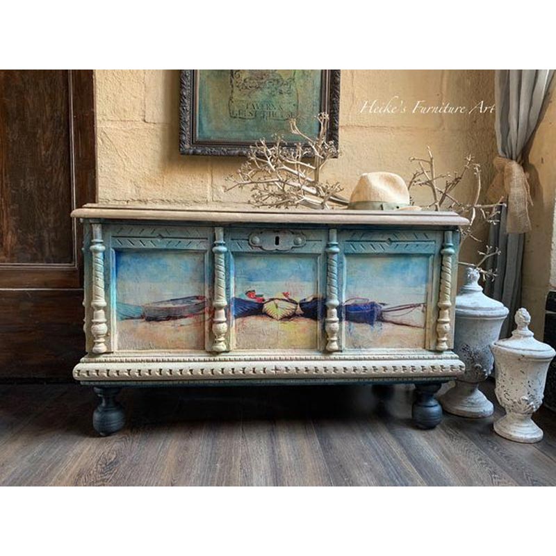 Συνιστούμε τη χρήση της κόλλας για decoupage Annie Sloan Image Medium (link) και για τελικό φινίρισμα μπορείτε ή να χρησιμοποιήσετε το ίδιο προϊόν ή για μεγαλύτερη ανθεκτικότητα το βερνίκι Annie Sloan Lacquer (Gloss or Matte).