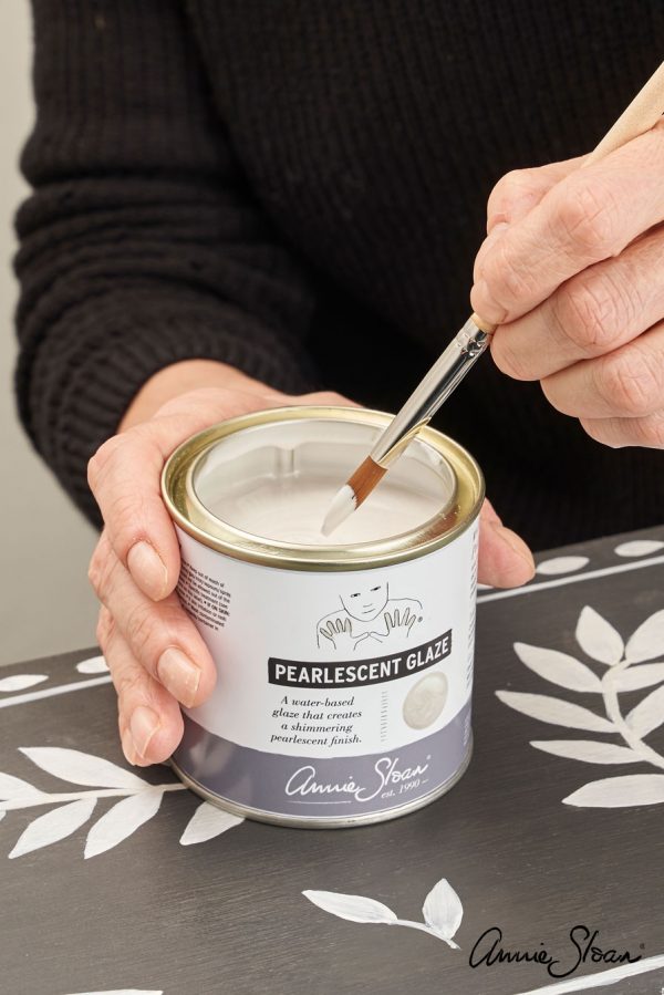 Το Pearlescent Glaze θα δώσει ένα πανέμορφο, λαμπερό φινίρισμα. Εφαρμόστε πάνω σε Chalk Paint® για πιο έντονο ιριδισμό, αυτό θα λειτουργήσει καλύτερα σε ανοιχτότερα χρώματα όπως το Old White. Μπορείτε επίσης να αναμίξετε το Pearlescent Glaze με πολύ μικρές προσθήκες του Paint Chalk® για να δημιουργήσετε ελαφρώς λαμπερές, διαφανείς αποχρώσεις.