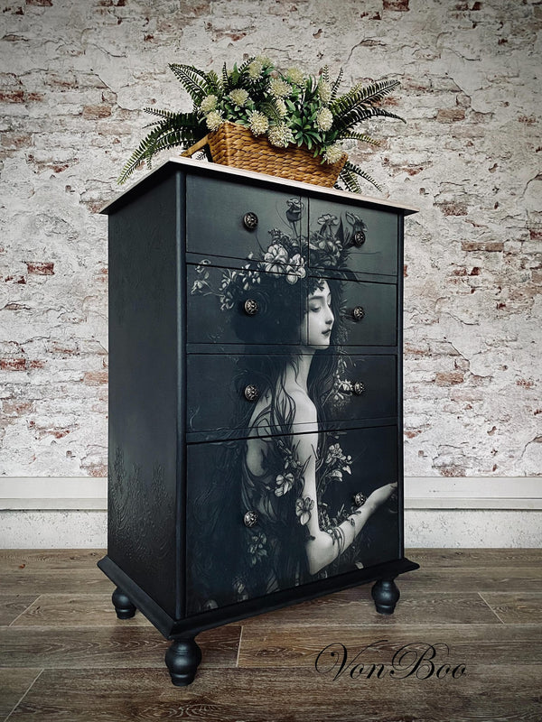 Το ιδανικό μέγεθος χαρτιού και εκτύπωση έχουν φροντιστεί επιμελώς από τη Michelle, ιδιοκτήτρια της MINT, και είναι το αποκορύφωμα χρόνων δουλειάς με χαρτιά decoupage και μεταμορφώσεων επίπλων με σκοπό την μοναδικότητα, το στυλ και την καλλιτεχνική αρτιότητα.