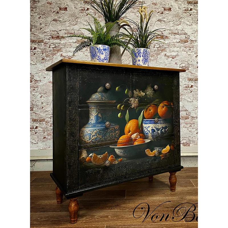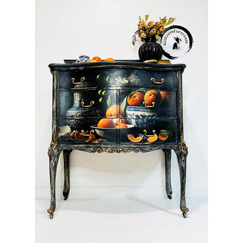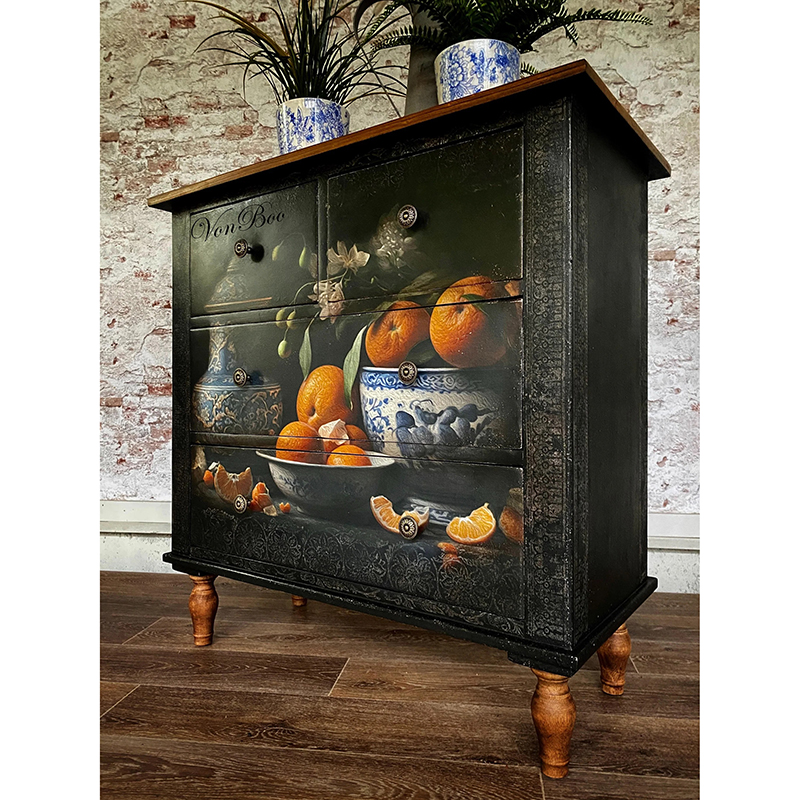Το ιδανικό μέγεθος χαρτιού και εκτύπωση έχουν φροντιστεί επιμελώς από τη Michelle, ιδιοκτήτρια της MINT, και είναι το αποκορύφωμα χρόνων δουλειάς με χαρτιά decoupage και μεταμορφώσεων επίπλων με σκοπό την μοναδικότητα, το στυλ και την καλλιτεχνική αρτιότητα.