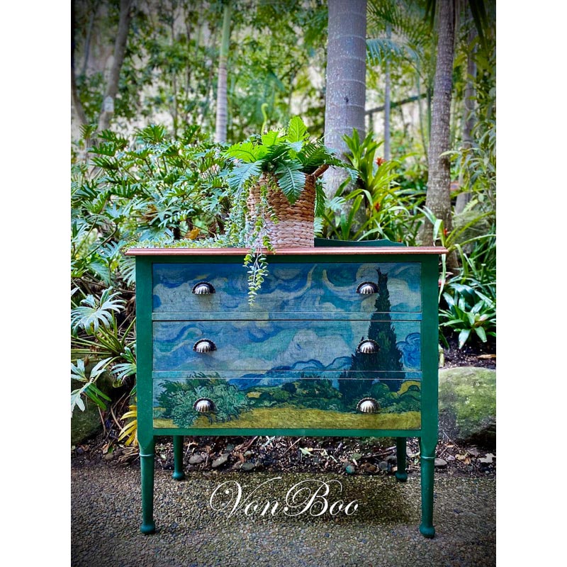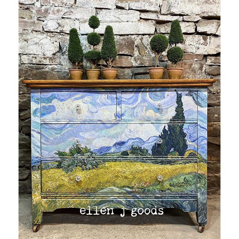 Το ιδανικό μέγεθος χαρτιού και εκτύπωση έχουν φροντιστεί επιμελώς από τη Michelle, ιδιοκτήτρια της MINT, και είναι το αποκορύφωμα χρόνων δουλειάς με χαρτιά decoupage και μεταμορφώσεων επίπλων με σκοπό την μοναδικότητα, το στυλ και την καλλιτεχνική αρτιότητα.